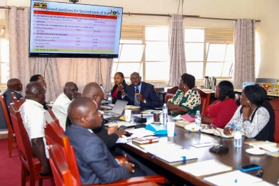The Minister of Public Service chaired a Top Management meeting at the Ministry Boardroom, where several key presentations relating to the operationalisation of the Public Service Pension Fund were made and discussed. These included the Guidelines for the Appointment of Trustees to the Public Service Pension Fund, the interim structure for the secondment of staff to the PSPF, job descriptions and person specifications, the Business Case Option Analysis Report for the PSPF Management System, and the blueprint for the Pension Fund Management System (PFMS).